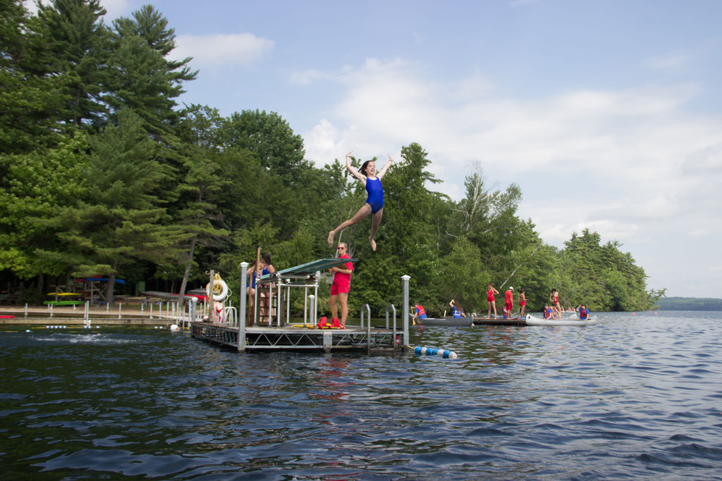 Are you on a diving team and a confident swimmer? Come share your skills with our campers by teaching them forward pikes, back dives and somersault dives on our beautiful lake. Our Diving instructor is part of the swimming department and teaches swimming to campers as well. Lifeguard certification and Red Cross First Aid/CPR is required for all waterfront staff. We can help you locate a course if you are not trained.